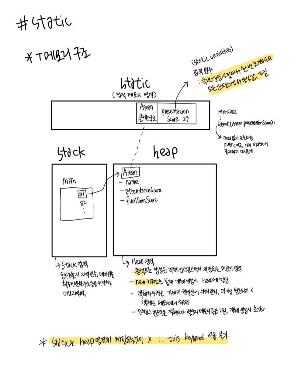 - static 메서드나 변수는 해당 클래스의 객체 없이도 참조 가능하다.